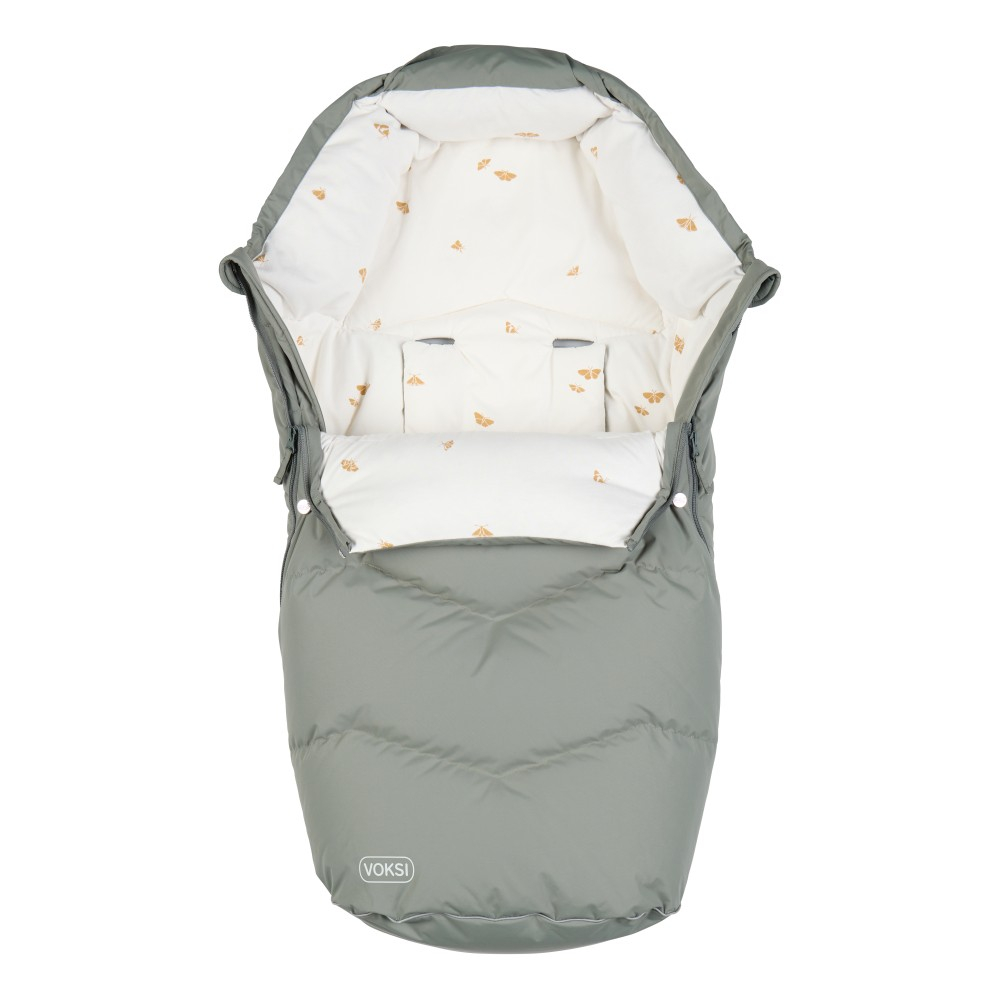 Jedinečný dizajn zadného otvoru pre zádržný systém umožňuje tento fusak ľahko nastaviť a použiť v kočíkoch s rôznymi popruhmi. Na zadnej strane je tiež vybavený protišmykovým materiálom, čo znamená, že v kočíku drží na svojom mieste. Súčasťou je predlžovací diel, ktorý sa dá ľahko pripnúť do zipsov vo chvíli, keď dieťa vyrastie a potrebuje viac miesta. Na prednej strane sú gombíky, do ktorých sa pripne klopa a tým sa fusak zmenší aktuálnym potrebám dieťaťa. Spodný diel je možné tiež použiť ako hraciu podložku a sedaciu vložku do kočíka. Dodáva sa s mäkkou vložkou pre hlavičku, ktorá poskytuje extra pohodlie pre dieťa a chráni vnútorný poťah pod hlavičkou. Oblasť okolo oblasti hlavy je možné upraviť podľa poveternostných podmienok a preferencií dieťaťa. Nesťahujte striktne oblasť hlavy do maxima, dieťa musí dýchať. Nechajte deti vždy spať pod dohľadom.