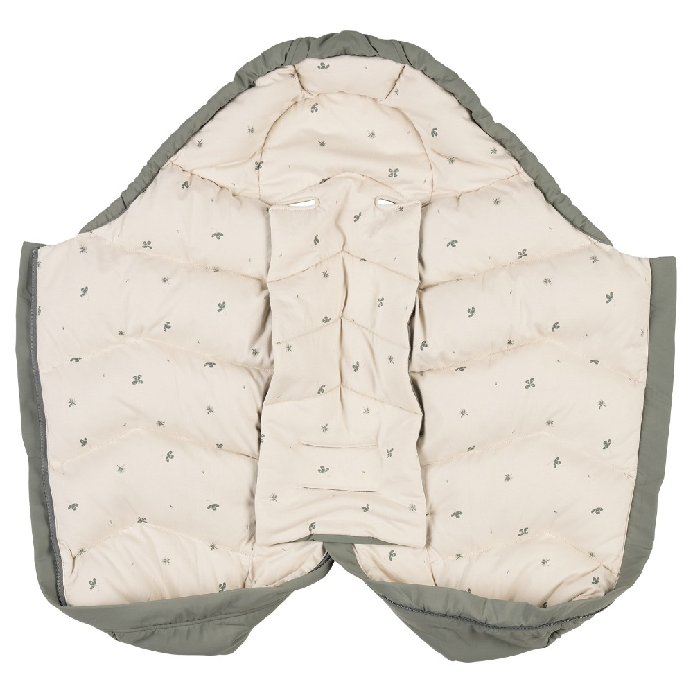 Lze jej používat od narození až do 1,5 roku. Je ideální pro dlouhé i krátké cesty a je navržen tak, aby se vaše dítě v autě cítilo bezpečně, v teple a pohodlí. Lze jej také použít jako spací pytel a má přední zip pro snadný přístup k dítěti.